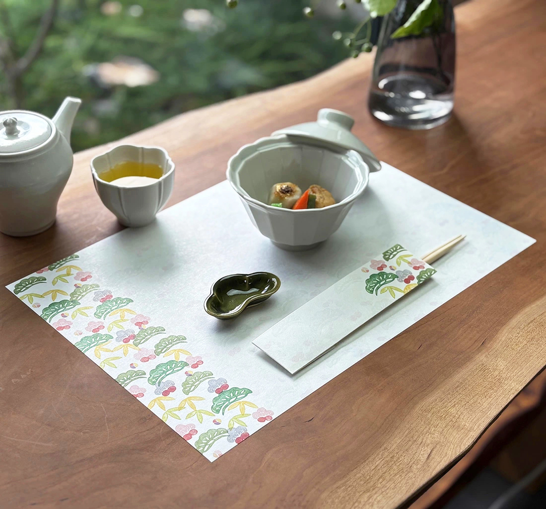 美濃和紙のお箸袋とお膳敷紙をデザインさせていただきました。柔らかく可愛らしい雰囲気、消…